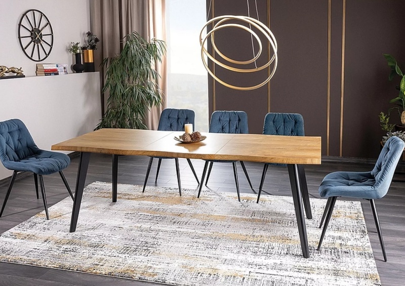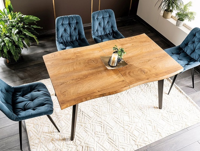 Fresno ruokapöytä tarjoaa joustavuutta, näyttävän aaltoilevan designin ja laajat kokovaihtoehdot, jotka tekevät siitä täydellisen valinnan moderniin kotiin. Samettiverhoillut Chic-tuolit täydentävät kokonaisuuden ylelliseksi ja yhtenäiseksi.