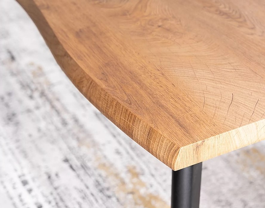 Pöydän aaltoileva reunus luo erottuvan ja kiehtovan ilmeen, joka tuo ruokailutilaan modernia näyttävyyttä. Muotoilu yhdistää hienostuneen estetiikan ja käytännöllisyyden, tehden pöydästä todellisen keskipisteen.