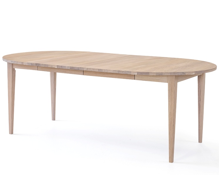 Pöytää voidaan jatkaa 1 tai 2 jatkopalalla. Garda sarjan materiaalina helppohoitoinen valkoöljytty tammi.