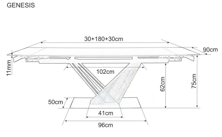 Genesis-ruokapöytä tarjoaa jopa 60 cm lisätilaa molemmissa päissä, jolloin se mukautuu täydellisesti niin arjen aterioihin kuin suurempiin juhlahetkiin. Jatkomekanismi tekee pöydän laajentamisesta vaivatonta ja käytännöllistä.