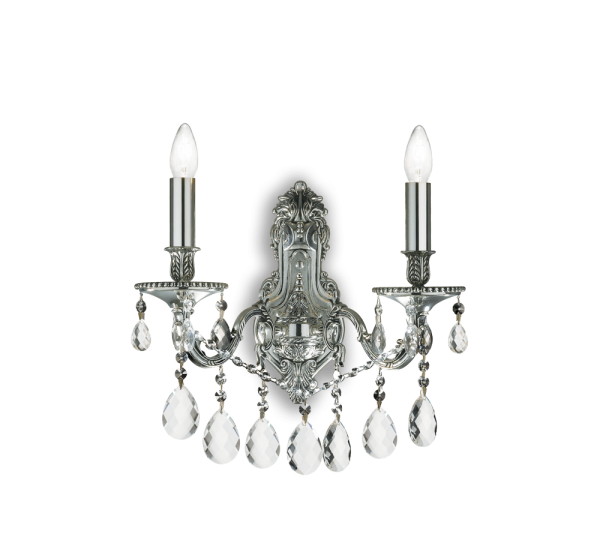 Tyylikäs 2-haarainen Gioconda kristalliseinävalaisin huokuu perinteistä eleganssia ja hienostunutta luksusta. Metallirunko yhdistettynä kirkkaisiin, kahdeksankulmaisiin kristallielementteihin luo säihkyvän kokonaisuuden, joka tuo arvokkuutta niin klassiseen kuin moderniin sisustukseen.