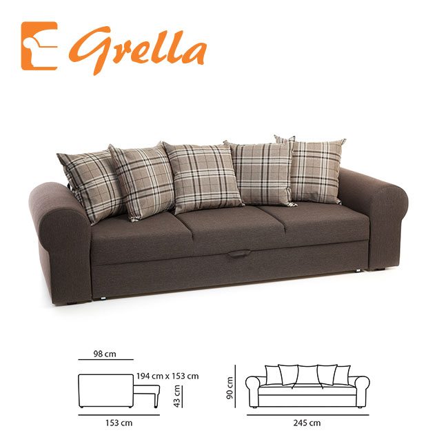 Grella vuodesohva omaa kauniin muotoilun, joka sopii moniin eri sisustuksiin. Pienen tilan Grella sohva tarjoaa sekä mukavuutta että käytännöllisyyttä. Runko on laadukasta massiivipuuta, kalustelevyä sekä vaneria, ja istuimissa on laadukas zig-zag jousitus. Vuode avautuu vaivattomasti vetämällä istuinosaa ulos ja työntämällä selkänoja alas. Vuodekoko avattuna 153×194 cm. Sohvan tausta on myös viimeistelty, joten sijoitus huoneen keskelle on myös mahdollista. Viimeistele kokonaisuus tilaamalla sijauspatja sekä tyylikkäät koristetyynyt.