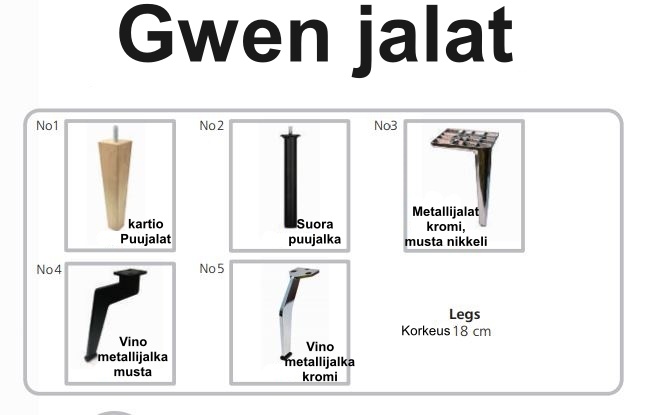 | Leveys | Syvyys | Korkeus | Halkaisija | kannen paksuus | Ruokapöydän koko avattuna 1 jatkolla | Ruokapöydän koko avattuna 2 jatkolla | Nojatuolin mitat | 2 ist sohvan mitat | 3 ist sohvan mitat | Istuinkorkeus | Työtuolin istuinkorkeus | Istuinleveys | Istuinsyvyys | Jalkojen malli | Jalkojen korkeus | Sokkelin korkeus | Selkänojan Leveys | Selkänojan korkeus | Niskatuen korkeus | Käsinojan korkeus lattaiasta | Käsinojan korkeus lattiasta | Käsinojan leveys | Käsinoja mallit | Istuintyyny | Selkätyyny | Muut pehmusteet | Divaanisohvan Jalkapäädyn korkeus | Divaanisohvan pääpäädyn korkeus | Jalkapäädyn korkeus | Pääpäädyn korkeus | Vuodesohvan syvyys avattuna | Vuodekoko | Istuinkorkeus patjan kanssa | Reunan korkeus | Sivulaidan korkeus | Patjapesän korkeus | Patjakoko | Päätyjen koot | Patjan korkeus | Patjan kovuus | Patjan koko jatkettuva | Vapaa tila sängyn alla | Sänkyjen materiaali | Patjojen materiaali | Sijauspatjan materiaali | Kangasverhoilu | Kaapin sisämitat | Laatikon sisämitat | Materiaali | Materiaalit | Mitta | Muut mitat | Muuta | lisätietoja | Väri | Jalkojen väri | Nahkavärit | Puuvärit | Vetimien väri | Vapaa tila tuotteen alla | Tekniset tiedot | Painoraja | Takuu | Saatavuus | Toimitus | Paino | Timantti värit | Jalat tai sokkeli | Kannen koko | Elementit | Ovien malli | Timantti osien materiaali | Hyllyjen materiaali | Vetimet | Valmistusmaa | Taljan mitat | Mattojen Materiaali | Tyynyjen ja torkkujen materiaali | mattojen mitat | Nukan pituus | Mattojen värit | Tyynyjen ja torkkujen värit | Rullamaton leveydet | Varjostimen korkeus: | Varjostimen leveys | Varjostimen syvyys | Valaisimen Materiaali | Valaisimen tiedot | Valaisimen värit | Varjostimen värit | Huomioitavaa | Työtuolien ominaisuudet | Työtuolien verhoilu |