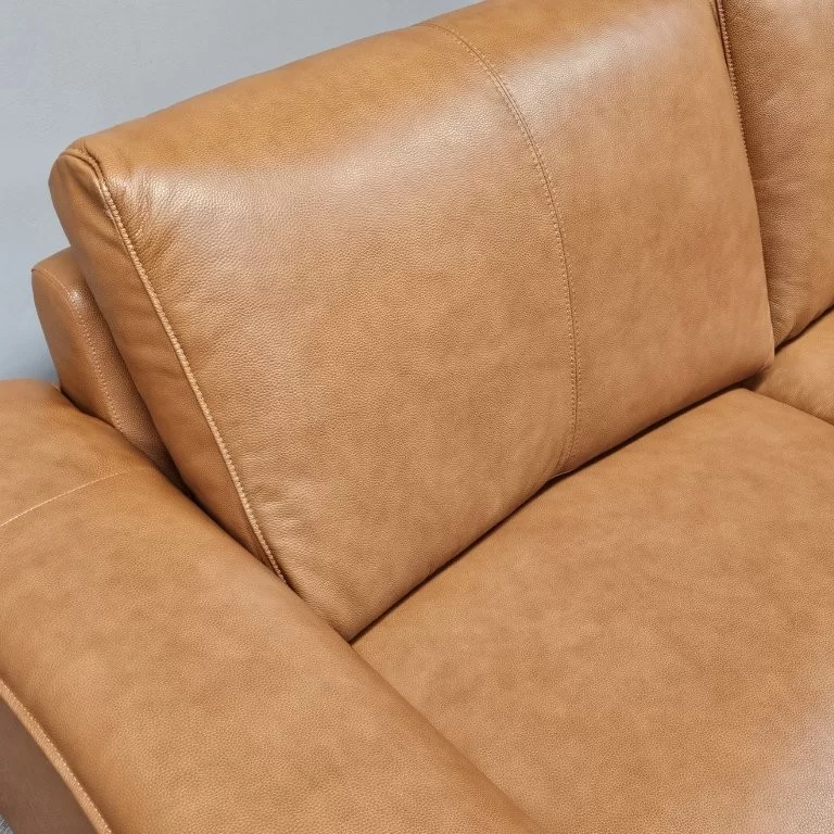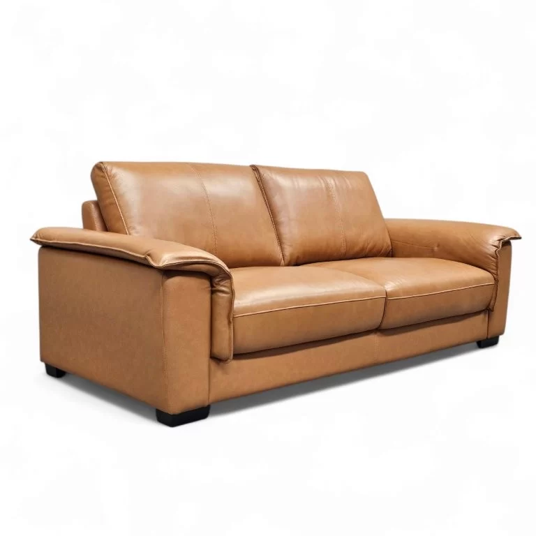 Kulutusosat on verhoiltu aidolla, korkealaatuisella nahalla, kun taas taka- ja sivuosissa käytetty keinonahka tekee sohvasta kevyemmän ja helpommin puhdistettavan. Tämä materiaaliyhdistelmä takaa sekä pitkäikäisyyden että käytännöllisyyden arjen vaatimuksiin.