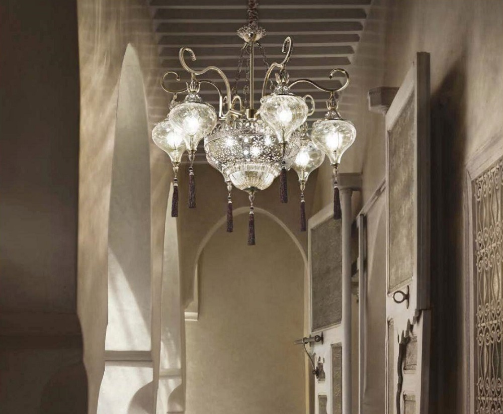 Tyylikäs Harem SP6 kruunuvalaisin on vaikuttava katseenvangitsija, jossa antiikinmessinkinen metallirunko, kohokuvioidut yksityiskohdat ja upeat kristallikoristeet muodostavat ylellisen kokonaisuuden. Klassinen muotokieli ja koristeellisuus tuovat tilaan arvokkuutta ja ajattoman elegantin tunnelman.