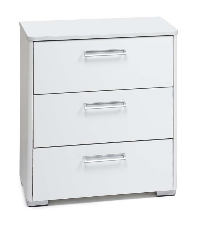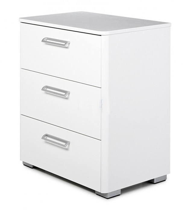 Kolme tilavaa vetolaatikkoa tarjoavat reilusti säilytystilaa, ja pyöristetyt reunat lisäävät turvallisuutta ja pehmeyttä muotoiluun. Lipasto toimitetaan melkein valmiiksi koottuna ainoastaan vetimet laitetaan kiinni.