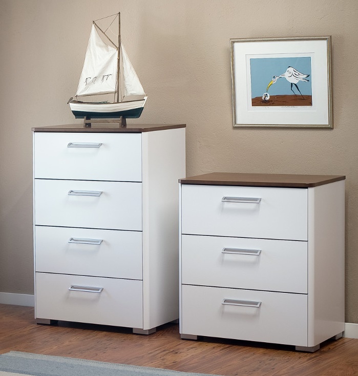 Valkoinen runko ja kansi sekä tyylikkäät alumiinivetimet tekevät lipastosta helposti yhdisteltävän erilaisten sisustustyylien kanssa. Helmi lipasto 1 sopii täydellisesti niin makuuhuoneeseen, eteiseen kuin olohuoneeseenkin, tuoden tilaan raikkautta ja harmoniaa.