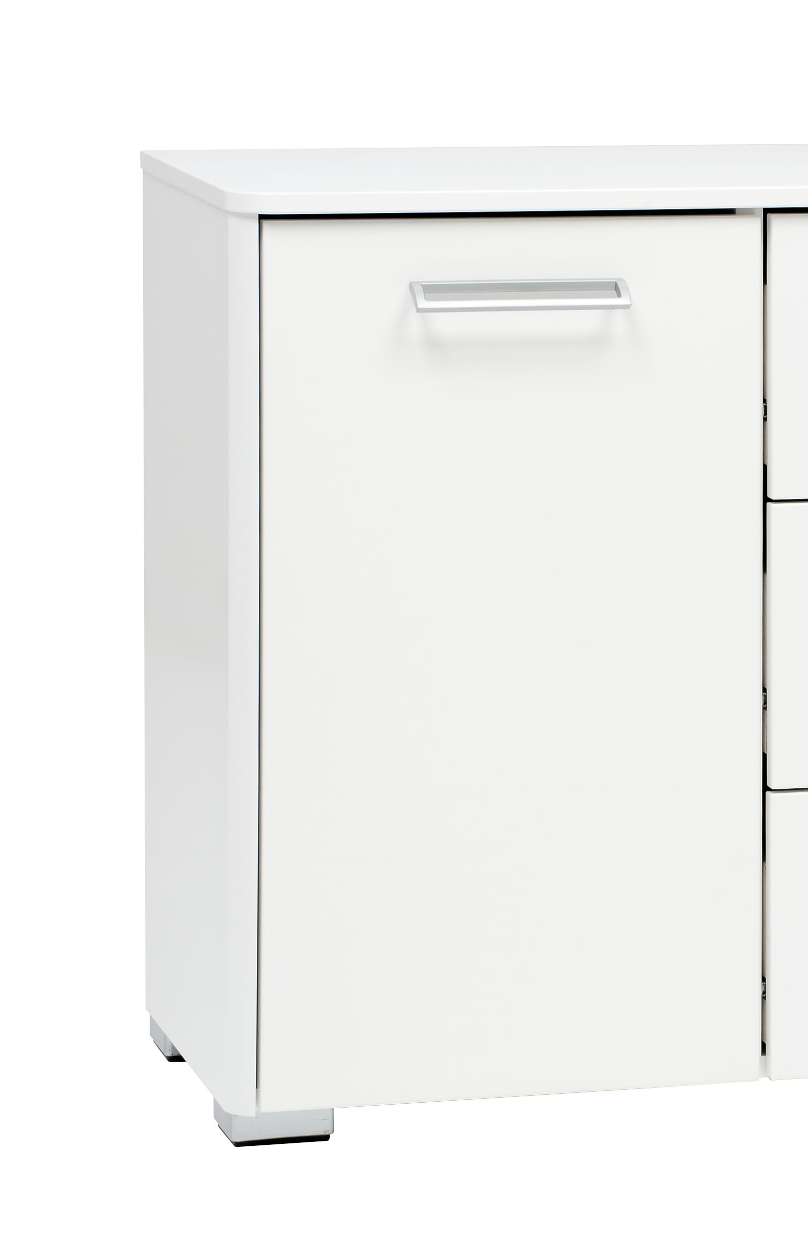 Pyöristetyt etureunat ja kannen pehmeät kulmat tekevät senkistä turvallisen valinnan kaikenikäisille käyttäjille ja tuovat kalusteeseen modernia pehmeyttä. Kaluste toimitetaan melkein valmiiksi koottuna ainoastaan vetimet ja jalat laitetaan itse paikalleen.