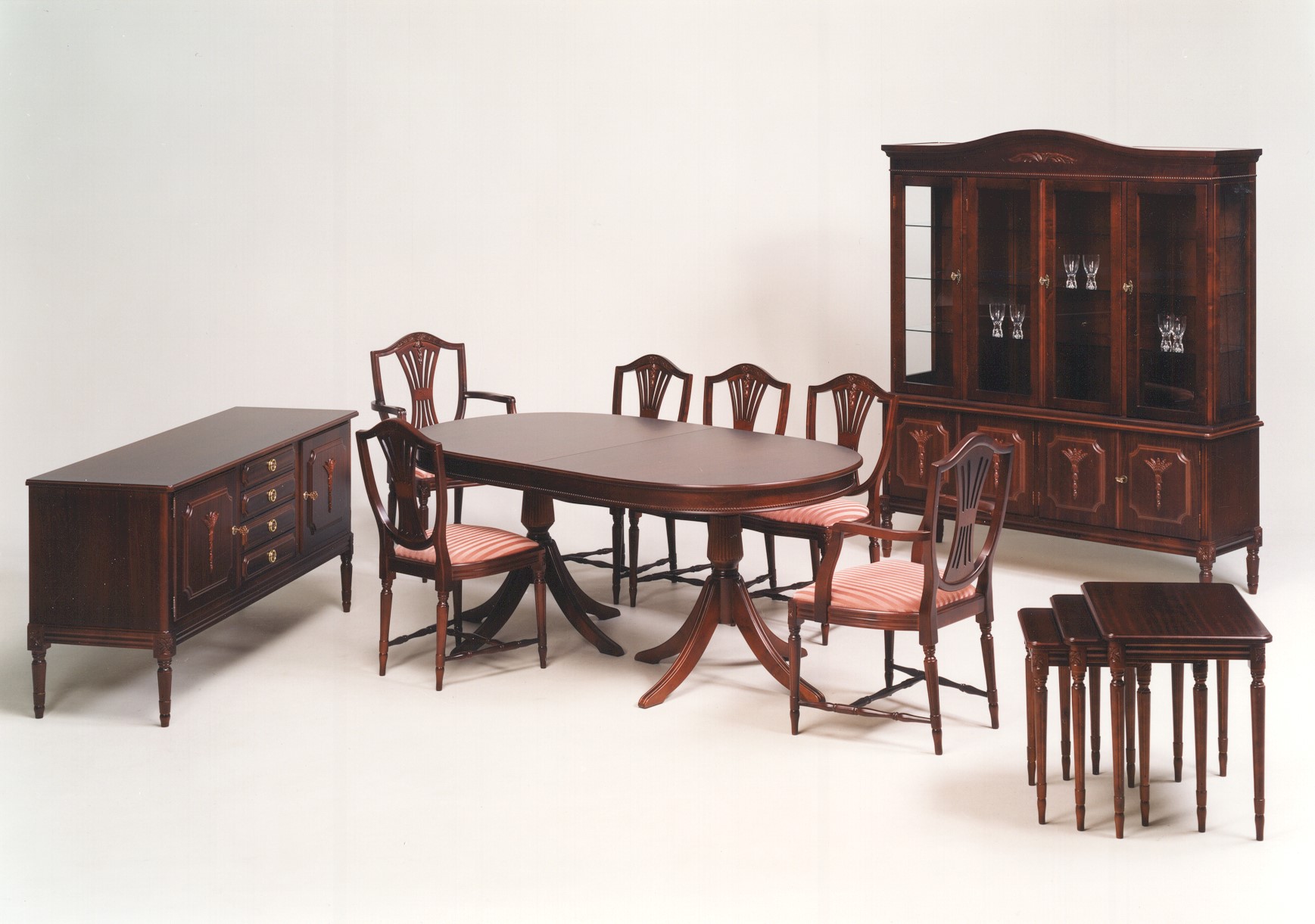 Tämä kotimainen Hepplewhite-ruokailuryhmä on enemmän kuin pelkkä ryhmä – se on osa klassista perintöä, joka tuo kotiin arvokkuutta, lämpöä ja ajatonta tyyliä.