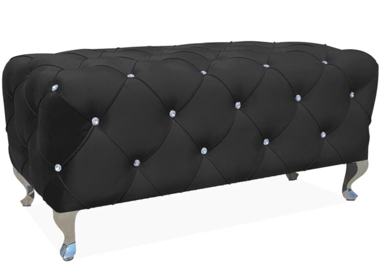 Tyylikkäät strassikoristukset tuovat ripauksen näyttävyyttä ja tekevät penkistä todellisen katseenvangitsijan. Tämä yksityiskohta nostaa huoneen sisustuksen uudelle tasolle ja lisää hienostunutta glamouria arkeen.