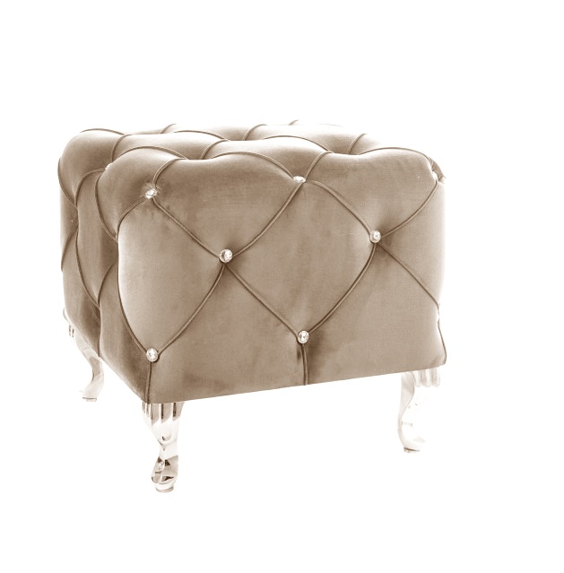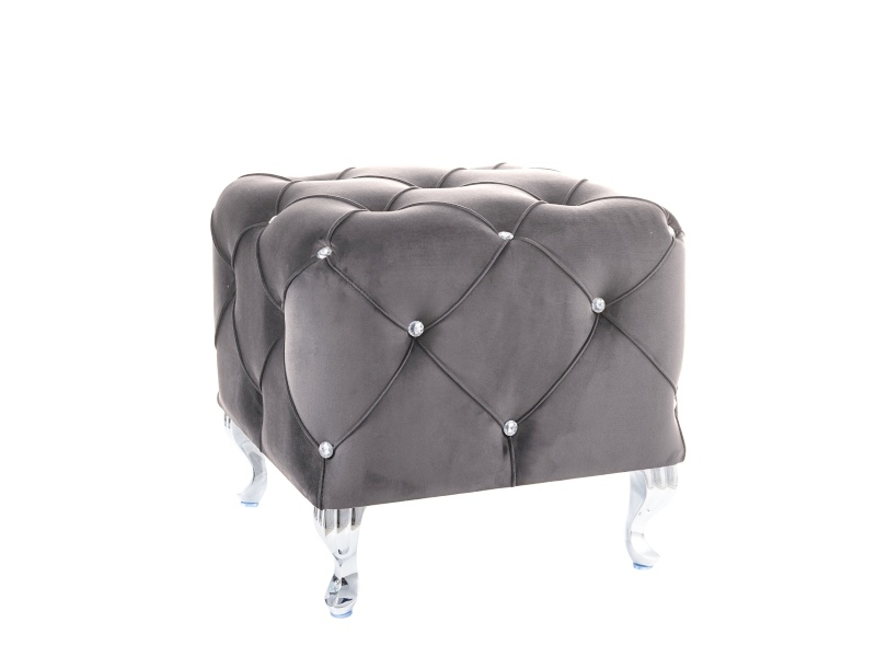 Tyylikkäät strassiyksityiskohdat ja krominväriset metallijalat tuovat rahille ripauksen luksusta ja modernia näyttävyyttä. Useat upeat värivaihtoehdot – vaaleanharmaa, harmaa, musta ja sininen – antavat mahdollisuuden valita juuri omaan kotiisi sopivan sävyn.