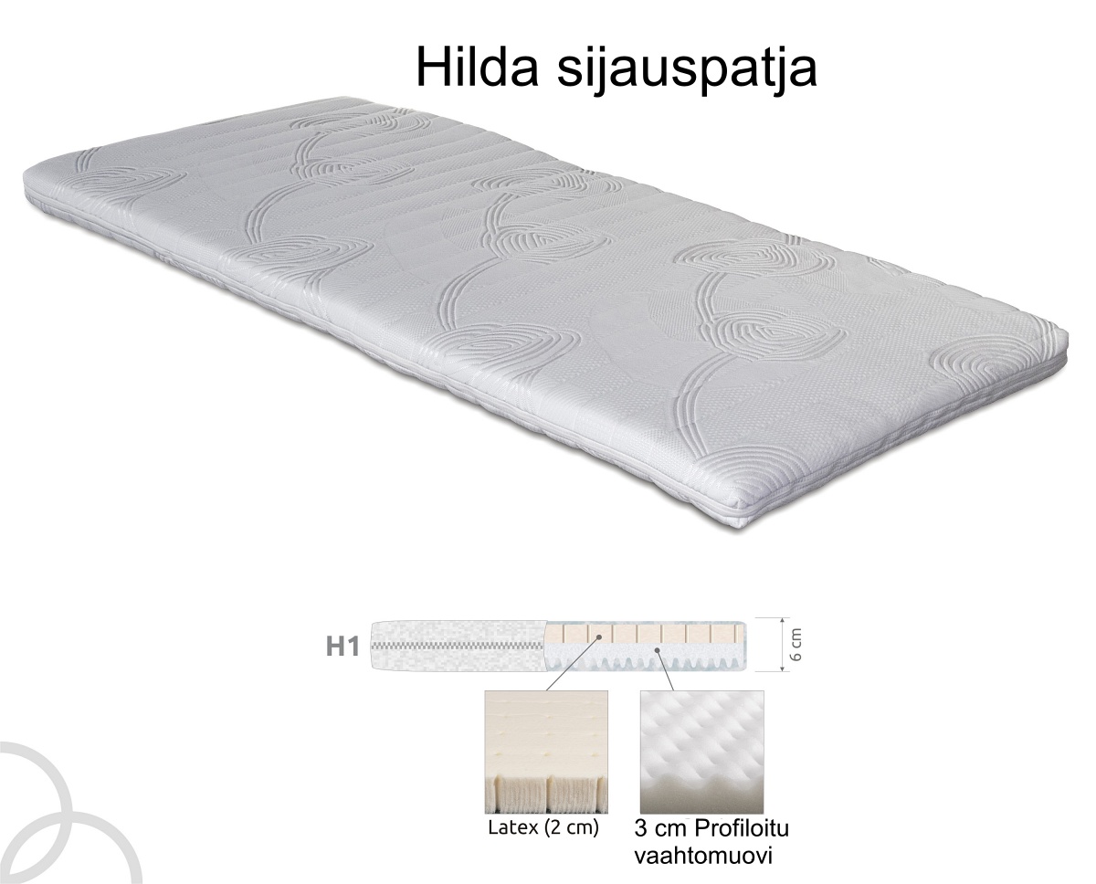 HILDA-sijauspatja on saatavilla useissa vakioko’oissa: joten löydät helposti oikean ratkaisun niin yhden hengen sänkyyn, parisänkyyn kuin jenkkisänkyynkin. Kestävä ja pehmeä rakenne tekee HILDA-sijauspatjasta pitkäikäisen investoinnin parempaan uneen – se viimeistelee vuoteen tuntuman ilman, että sinun tarvitsee vaihtaa koko patjaa. Huomioithan, että tuote on hygieniatuote. Tuotteiden hygieenisyyden turvaamiseksi hygieniatuotetta ei voi palauttaa.