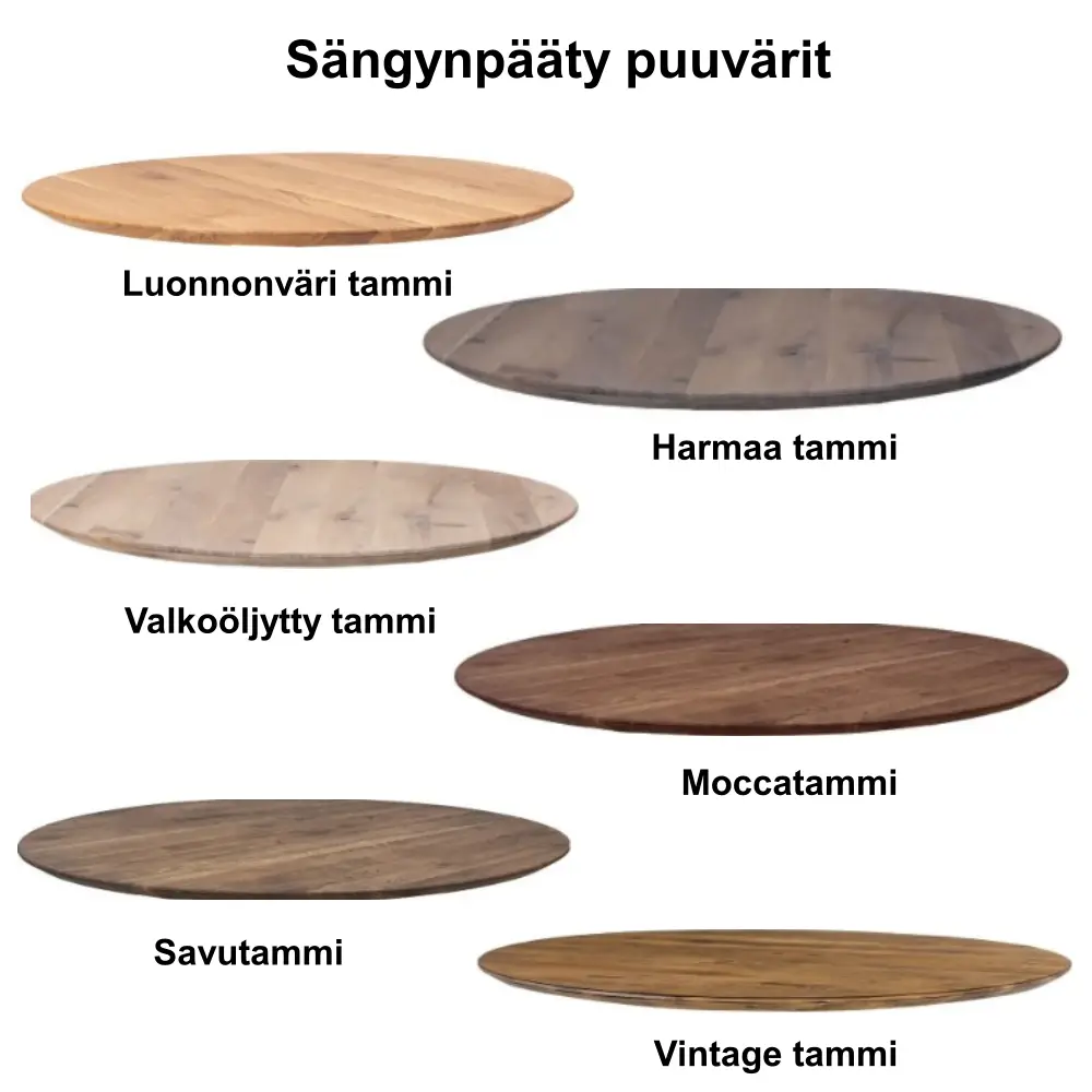 Sängynpääty on saatavana kuudessa kauniissa öljyvärissä, joiden avulla se on helppo sovittaa juuri omaan makuuhuoneeseen ja haluttuun tunnelmaan. Öljykäsittely korostaa puun luonnollista syykuviota ja suojaa pintaa, tehden päädystä sekä käytännöllisen että visuaalisesti vaikuttavan valinnan.