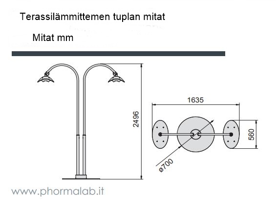 lasitetulle parvekkeelle, pihalle mihin vain tarvitset lämmitintä – sopii myös sisäkäyttöön. Myös ravintola ja kylpyläkäyttöön. Phormalabin terassilämmitin eroaa muista terassilämmittimistä tarjoamalla myös upean ulkonäön ja erittäin laadukkaan ja kestävän infrapuna lämmittimen. Pitkän kehittelyn tuloksena syntyi tämä energiaa säästävä ja erittäin tehokas lämmitin. Italialainen osaaminen näkyy jokaisessa yksityiskohdassa: vuosikymmenten kokemus automaatiosta ja alumiinivalusta varmistaa, että Phormalab-lamppujen runko yhdistää ajattoman designin, huipputason kestävyyden ja tinkimättömän laadun.