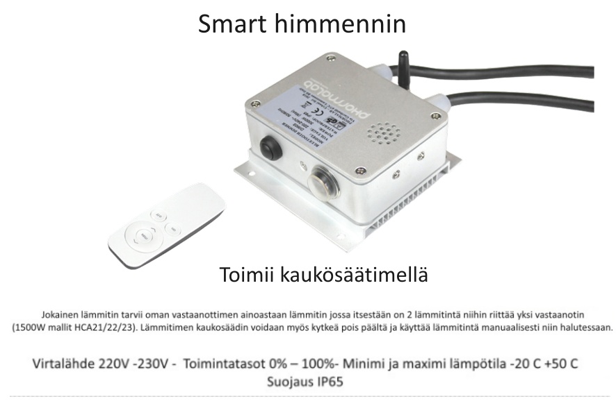 lasitetulle parvekkeelle, pihalle mihin vain tarvitset lämmitintä – sopii myös sisäkäyttöön. Myös ravintola ja kylpyläkäyttöön. Phormalabin terassilämmitin eroaa muista terassilämmittimistä tarjoamalla myös upean ulkonäön ja erittäin laadukkaan ja kestävän infrapuna lämmittimen. Pitkän kehittelyn tuloksena syntyi tämä energiaa säästävä ja erittäin tehokas lämmitin. Italialainen osaaminen näkyy jokaisessa yksityiskohdassa: vuosikymmenten kokemus automaatiosta ja alumiinivalusta varmistaa, että Phormalab-lamppujen runko yhdistää ajattoman designin, huipputason kestävyyden ja tinkimättömän laadun.