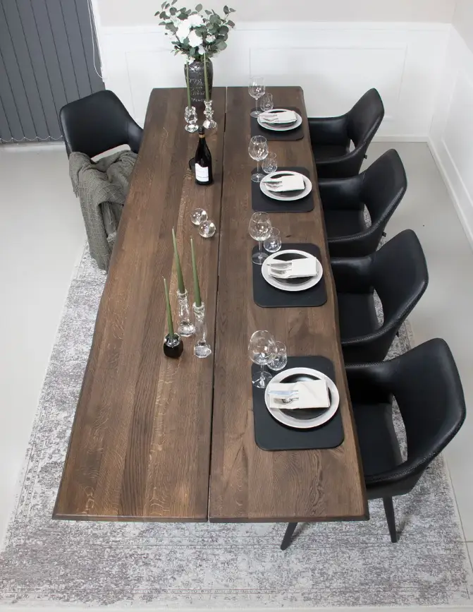 Hugin ruokapöytä B4 mustilla jaloilla on näyttävä ja laadukas valinta, jossa moderni muotoilu yhdistyy massiivipuun luonnolliseen kauneuteen. Selkeälinjainen pöytä sopii erinomaisesti niin moderniin kuin skandinaaviseen sisustukseen ja toimii ruokailutilan kestävänä katseenvangitsijana arjessa ja juhlassa.