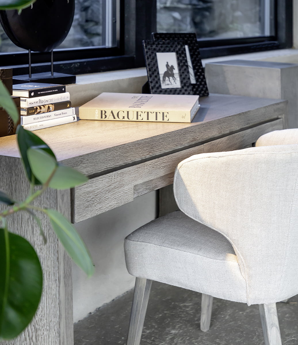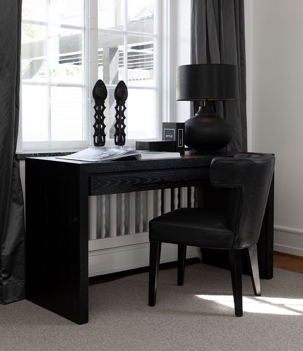 Hunter-kirjoituspöytä sulautuu saumattomasti sekä moderneihin että perinteisiin sisustuksiin, tuoden työtilaasi tyylikkyyttä ja tasokkuutta arkiseen työskentelyyn.