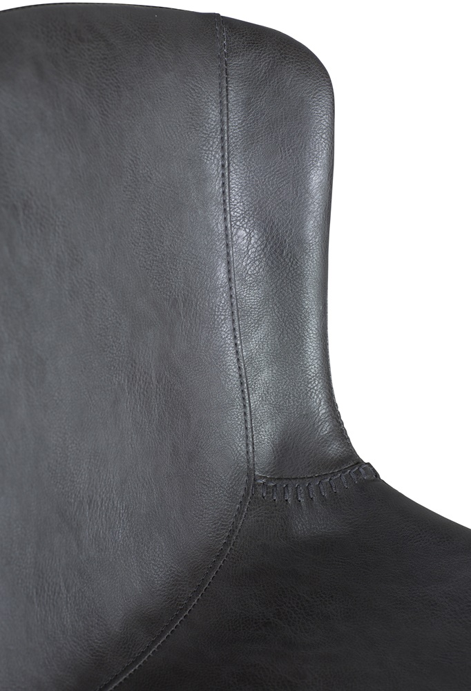 Pehmustettu istuin tarjoaa erinomaisen käyttömukavuuden, ja verhoiluvaihtoehdot – musta, ruskea sekä vintage-sävyt musta, harmaa ja cocoa – sopivat monenlaisiin sisustuksiin. Pulverimaalatut mustat metallijalat tuovat tuolille ryhdikkään ja kestävän rakenteen, joka toimii sekä kotikeittiössä että baarikorkuisen pöydän ääressä.