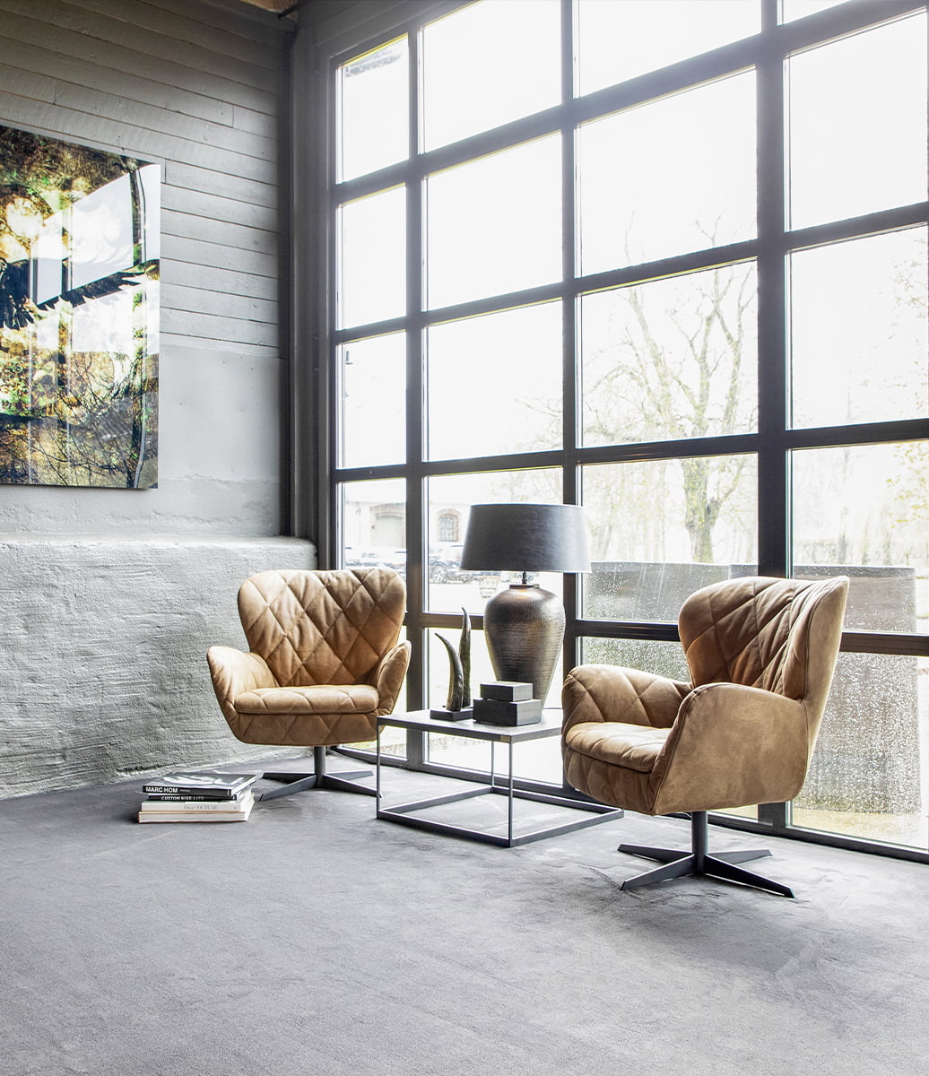 Ruskea nupukkinahka luo lämpimän ja arvokkaan tunnelman, kun taas kylmävaahtotäyte ja pyörivä mekanismi tarjoavat mukavan ja kehoon mukautuvan istumakokemuksen pitkäaikaiseen käyttöön.