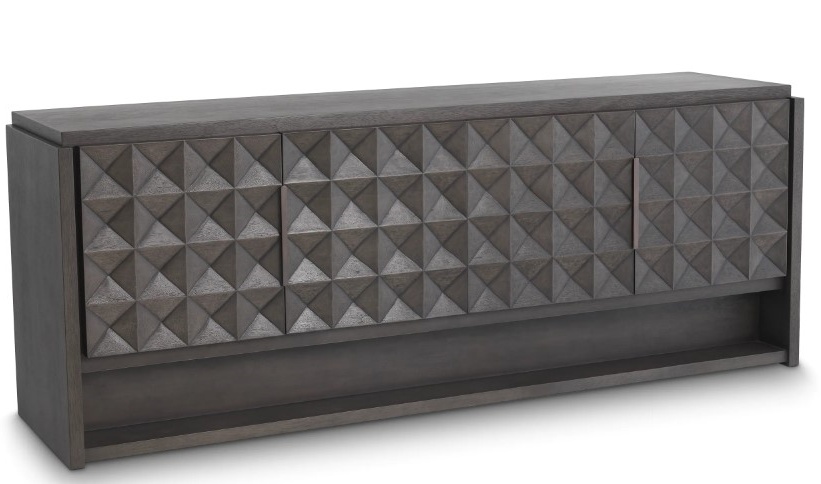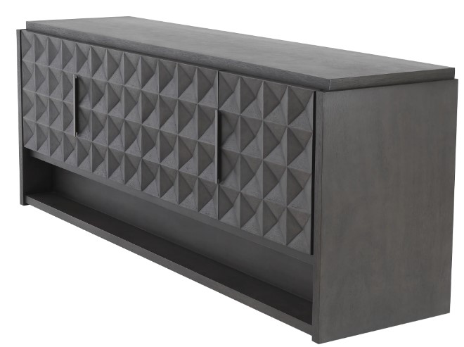 Massiivisesta merantipuusta valmistetut ovipaneelit hurmaavat geometrisella kuviollaan, joka luo syvyyttä ja näyttävän kolmiulotteisen efektin. Tämä tarkkaan viimeistelty yksityiskohta nostaa senkin ilmeen aivan uudelle tasolle ja tekee siitä aidosti uniikin huonekalun.