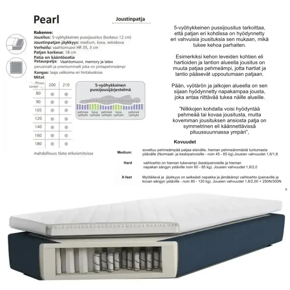 Joustinpatja toimitetaan samalla värillä verhoiltuna kuin itse sängyn runko halutessasi valkoisena valitse valikosta valkoinen