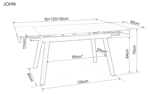• Käytännöllinen jatkettava John ruokapöytä. Pöydässä tukevat metalliset jalat sekä marmorikuvioinen pöytälevy. Pöytää saadaan jatkettua molemmista päädyistä yhteensä 60 cm lisää. Toimitus osissa.