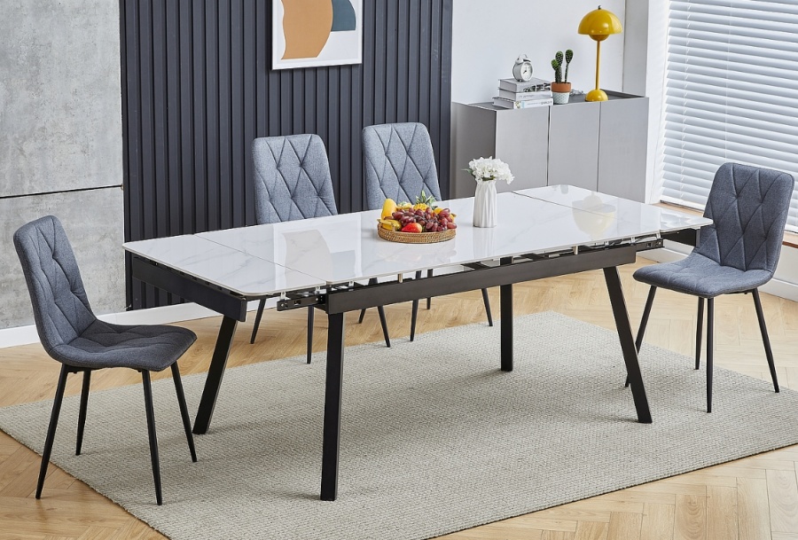John ruokapöytä tarjoaa modernin marmorikuvioidun designin, joustavan jatkettavuuden ja kestävän rakenteen, joka sopii sekä arkeen että juhlaan. Se on tilaa säästävä ja monipuolinen ratkaisu, joka mukautuu erilaisiin sisustuksiin ja tarpeisiin.
