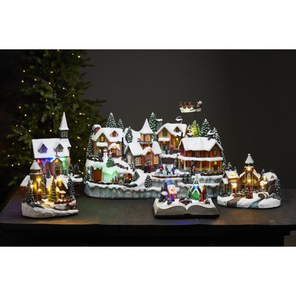 Jossa upeita erilaisia yksityiskohtia. Koristeessa 3 liikkuvaa osaa, sekä se soittaa 8 erilaista joululaulua. Valojen sävy on lämmin valkoinen. Koriste on tarkoitettu sisäkäyttöön.