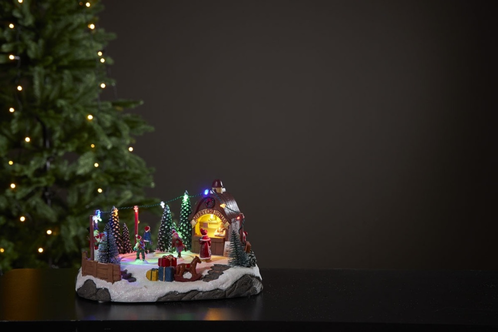 Upea jouluinen luistelukenttä, jossa hienoja erilaisia yksityiskohtia. Koristeessa pyöriviä osia ja siitä kuuluu musiikkia. Kenttää ympäröi moniväriset LED valot. Koristeessa on toistuva ajastin, joka on 6h päällä ja 18h pois päältä. Koriste on tarkoitettu sisäkäyttöön.