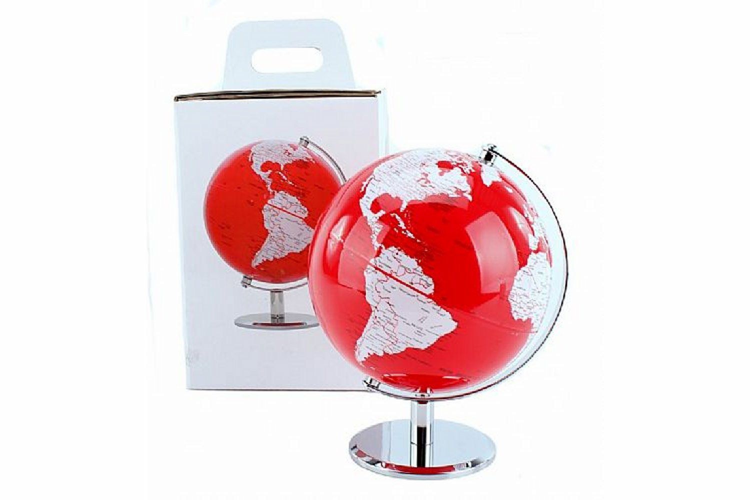 Karttapallo Punainen yhdistää rohkean punaisen ja raikkaan valkoisen värityksen kromijalustaan, luoden modernin ja elegantin kokonaisuuden. Sen tyylikäs design tekee siitä katseenvangitsijan, joka sopii täydellisesti niin kotiin kuin toimistoon.