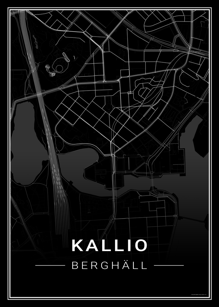 Kallio (Berghäll) -kaupunkijuliste tuo esiin yhden Helsingin tunnetuimmista ja persoonallisimmista kaupunginosista, jossa työläishistoria, kulttuuri ja nykypäivän urbaani elämäntapa kohtaavat. Mustavalkoinen ilme korostaa Kallion rouheaa henkeä ja tekee julisteesta vahvan sisustuselementin, joka kertoo tarinaa kaupunginosasta, jonka maine on kiirinyt ympäri Suomen.