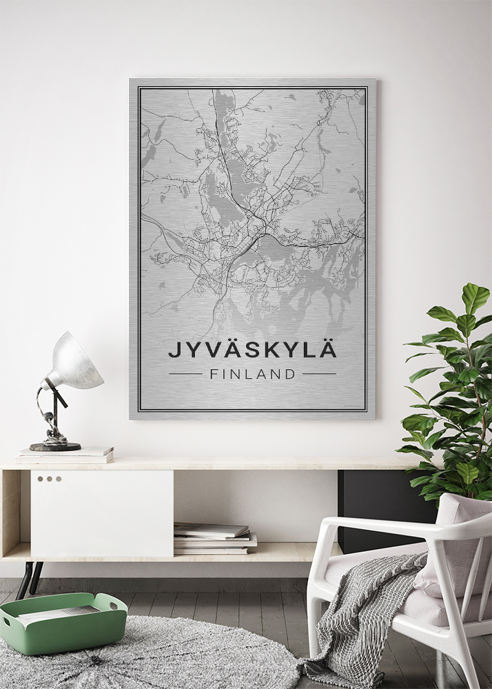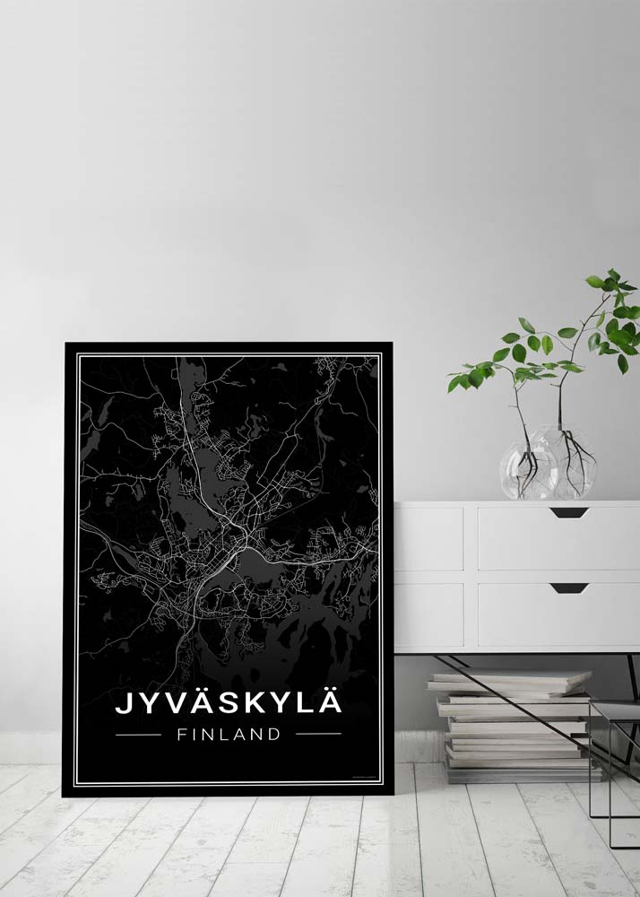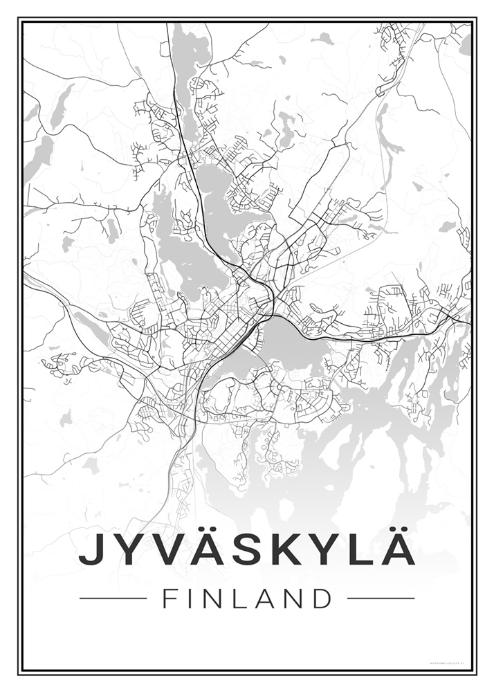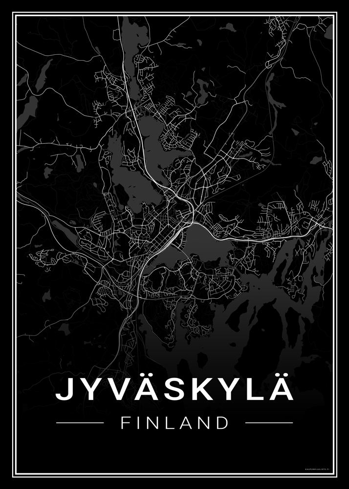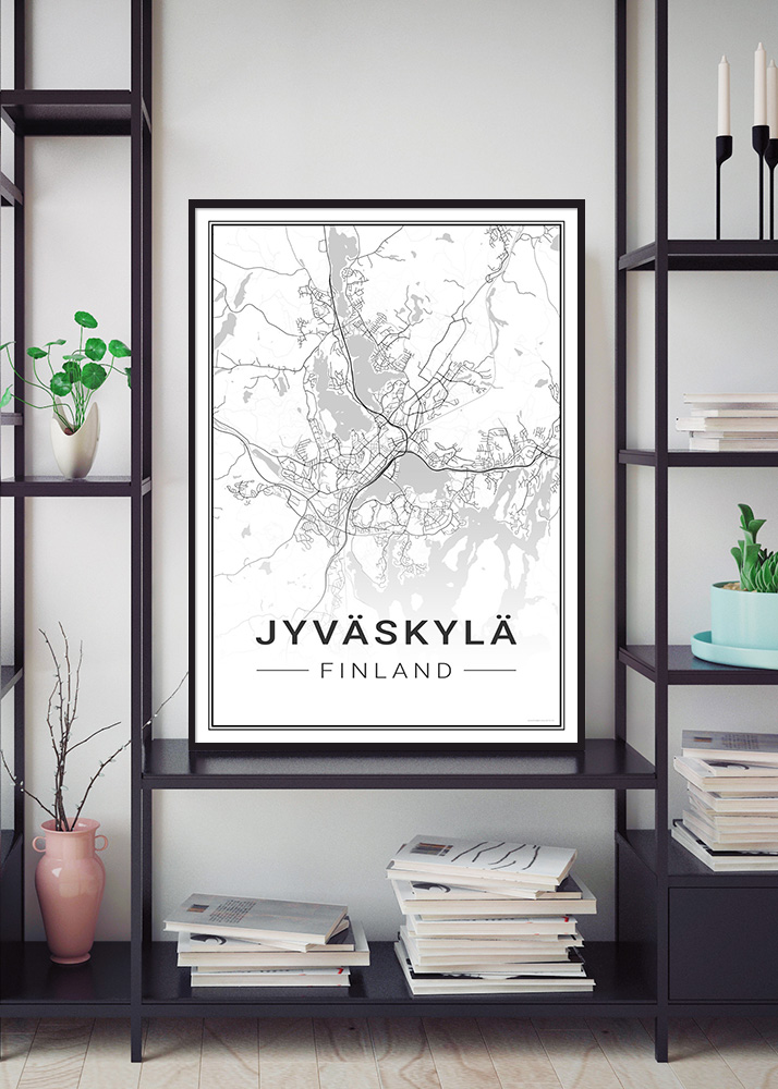 Jyväskylä kaupunkijuliste sopii täydellisesti olohuoneeseen, työtilaan tai lahjaksi kaupungin ystävälle. Lisäksi voit tilata kustomoidun julisteen mistä tahansa Suomen kaupungista, kunnasta tai kylästä tai haluamallasi tekstillä ottamalla yhteyttä asiakaspalveluumme.
