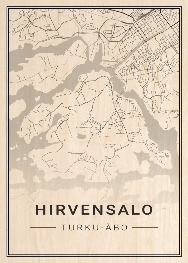 • Hirvensalo, Turun edustalla sijaitseva saari, on osa Turun kaupunkia ja kuuluu Hirvensalo-Kakskerran suuralueeseen. Se on luonnoltaan monipuolinen ja uskomattoman kaunis saari, joka rajoittuu upeaan Airiston merenselkään. Hirvensalon lähinnä pientalojen hallitsemilla, rauhallisilla asuinalueilla viihdytään vauvasta vaariin. Tämä upea mustavalkoinen juliste kuvaa turkulaista saarta, jonne haluaa palata aina uudelleen edes ajatuksen tasolla. Se sopii sisustuselementiksi kaikille, jotka kaipaavat eleganttia yksityiskohtaa seinälleen muistuttamaan kauniista ja luonnonläheisestä kaupungisosasta..