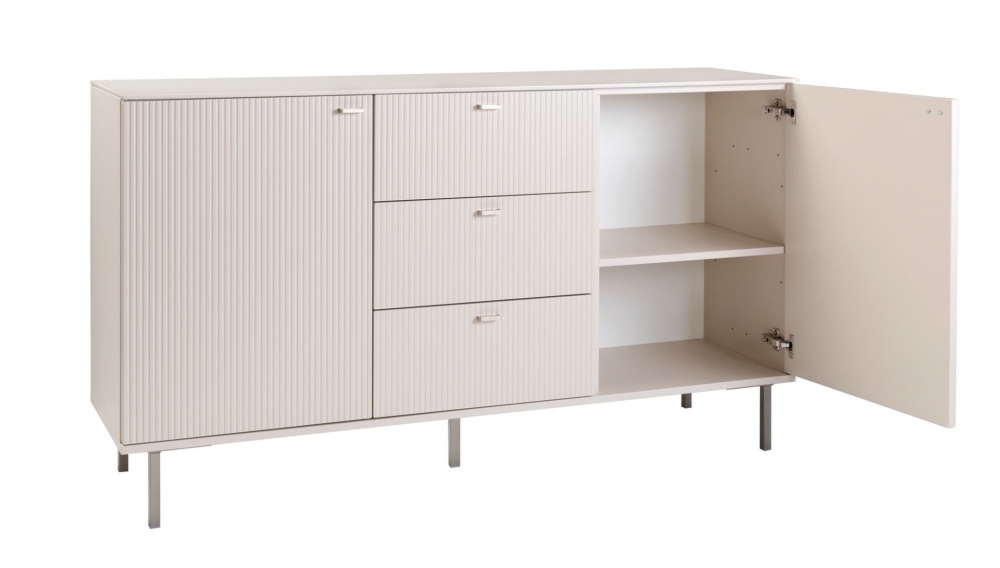 Kotimainen Kaura-senkki hurmaa modernilla ilmeellään ja laadukkaalla viimeistelyllä. Kolme laatikkoa ja kaksi ovea tarjoavat runsaasti säilytystilaa, kun taas greige-sävy ja tyylikäs pystyuritus tuovat tilaan harmonista ja ajattoman eleganttia ilmettä. Tämä senkki on täydellinen valinta, kun haluat yhdistää käytännöllisyyden ja muotoilun.