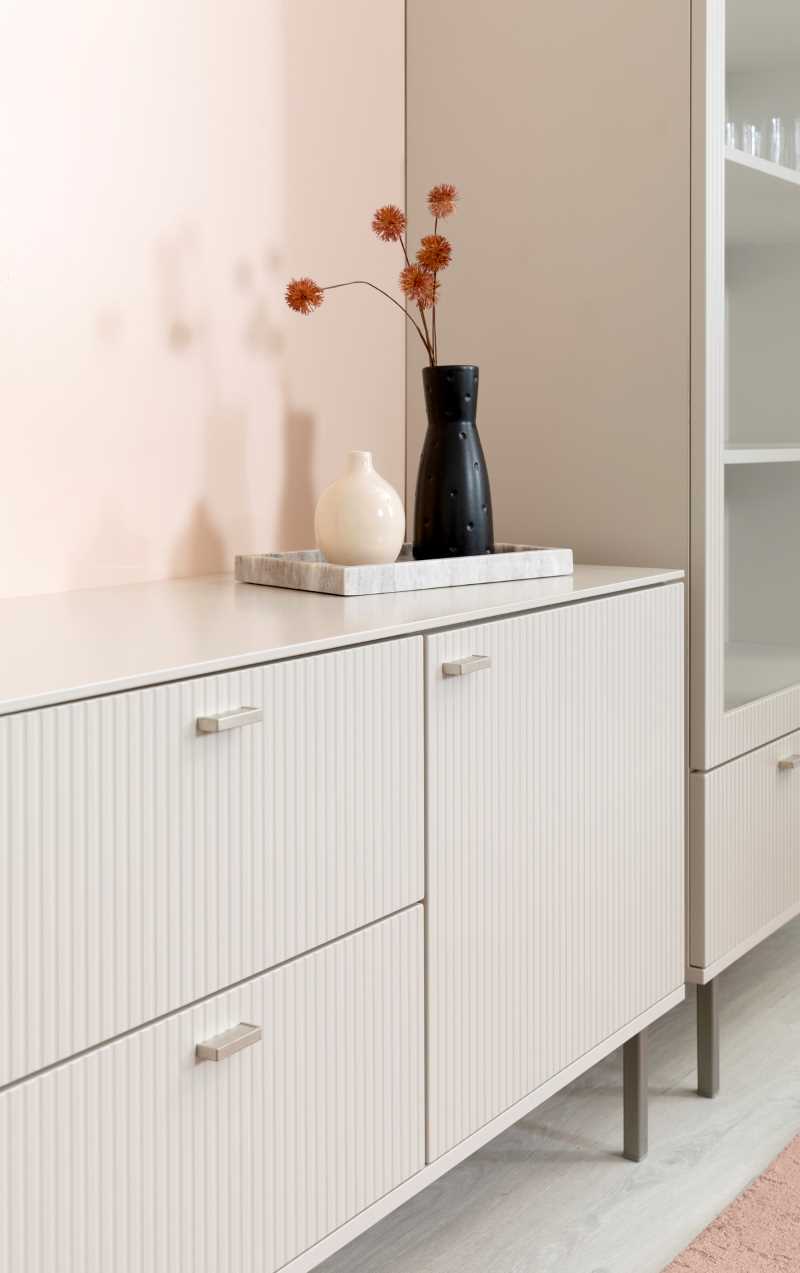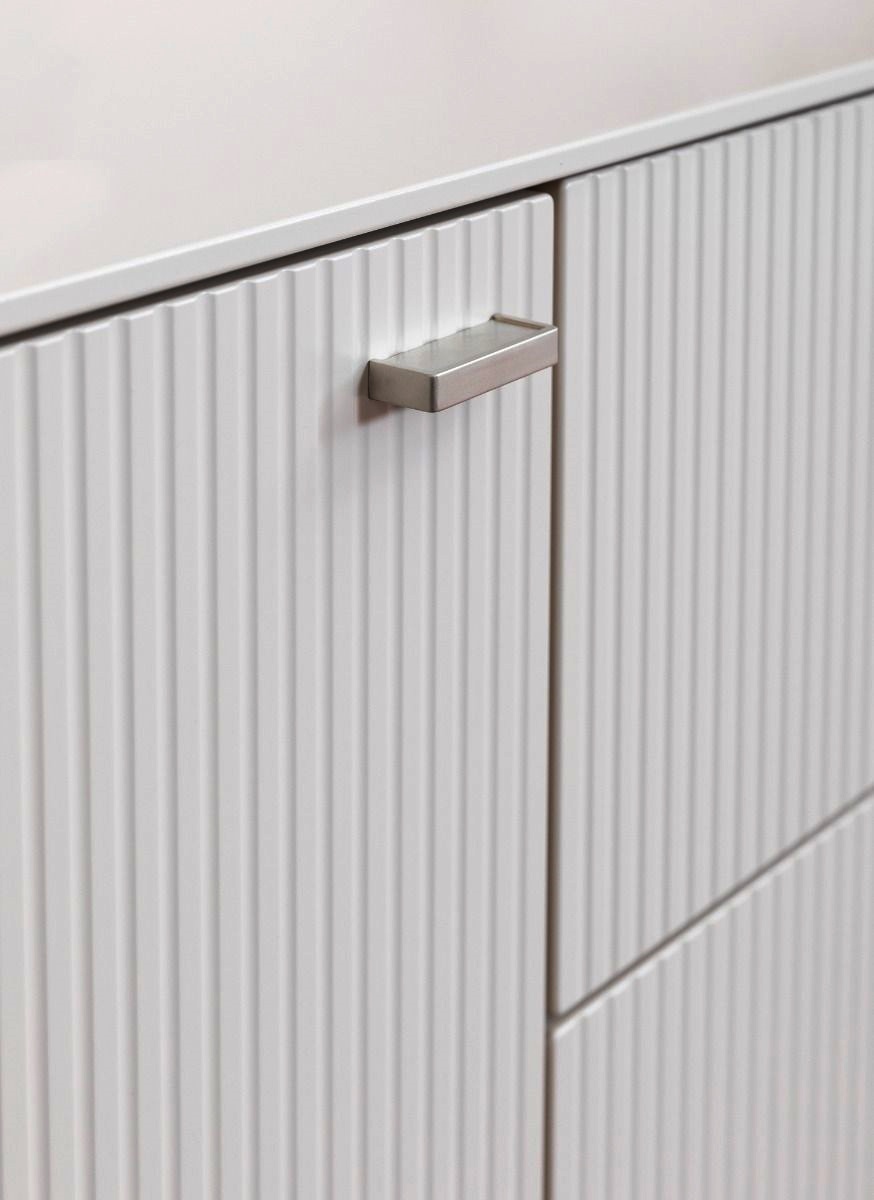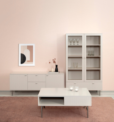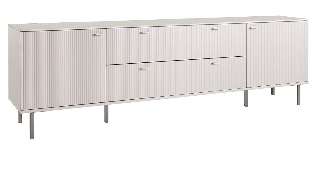 Kotimainen Kaura tv-taso tai senkki on täydellinen valinta, kun haluat yhdistää käytännöllisyyden ja tyylikkään muotoilun. Reunoilla olevat kaapit korkeussäädettävillä hyllyillä ja kaksi leveää laatikkoa tarjoavat runsaasti säilytystilaa, olipa kyse mediakeskuksesta tai olohuoneen säilytysratkaisusta. Kaunis greige-sävy ja pystyuritus tuovat tilaan modernia pehmeyttä ja yhtenäistä ilmettä.