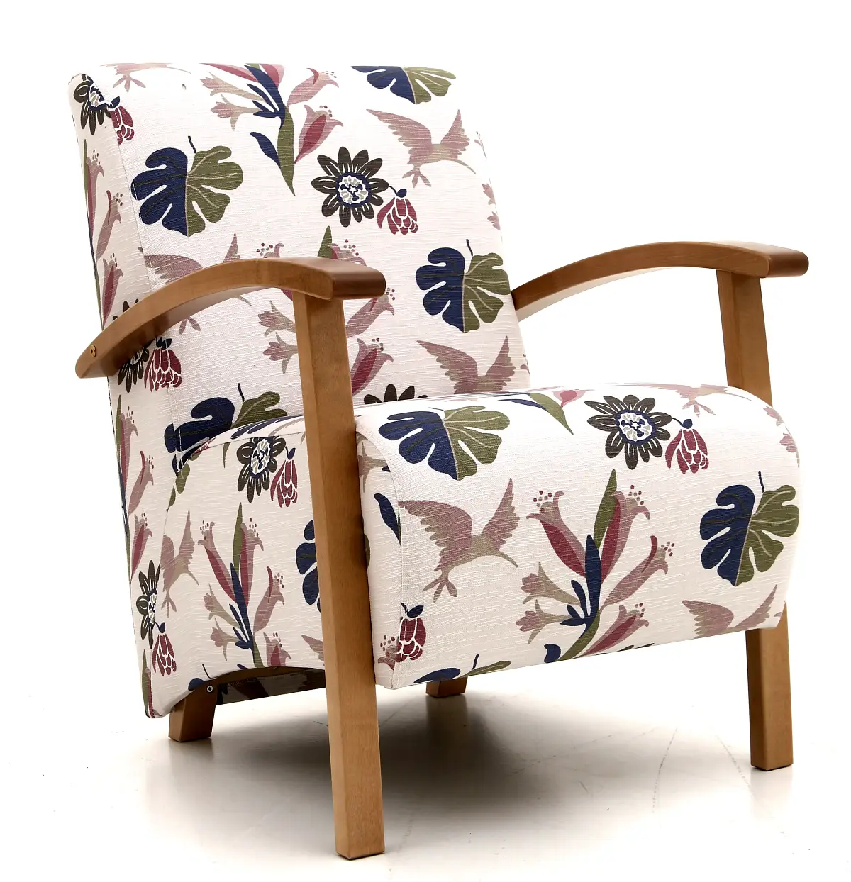 Kelly-nojatuoli on saatavana kuviollisella verhoilukankaalla – Alknis, Mestill, Bernado, Botanik, Grispholm tai kuvan Nektar kankaalla – sekä nahan kaltaisella Preston-kankaalla, joka tuo ilmeeseen ripauksen ylellisyyttä. Lisäksi tuoli voidaan verhoilla useilla muilla kankailla tilauksesta. Näin voit luoda juuri omaan kotiisi sopivan värin ja tunnelman.