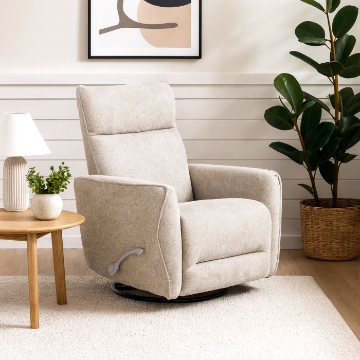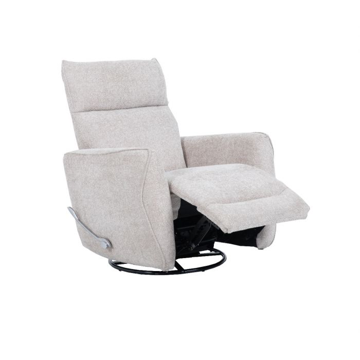 Metallinen kahva sivussa mahdollistaa selkänojan vaivattoman kallistamisen lepoasentoon ja jalkatuen nostamisen, joten optimaalinen rentoutusasento löytyy hetkessä. Vaahtomuovipehmuste (24 kg/m³) sekä istuimessa että selkänojassa takaa tasaisen tuen, ja 58 cm istuinleveys ja 52 cm istuinsyvyys tarjoavat runsaasti istumatilaa. Selkänojan korkeus ja muoto seuraavat kehoa miellyttävästi.