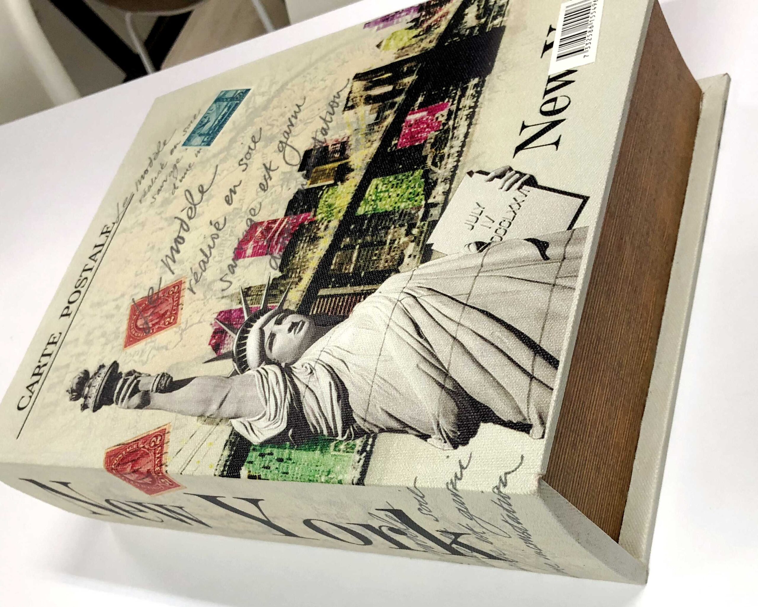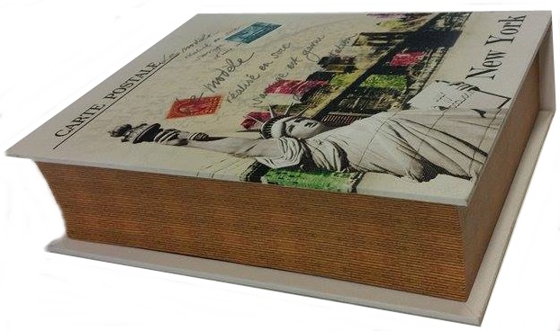 Kirjarasia on loistava tapa säilyttää aarteita kirjahyllyssä tai pöydällä jolloin siinä on kätevä säilyttää kaukosäätimet tai tai mitä haluatkin säilyttää piilossa. Kirjarasia on valmistettu puusta ja se päällytetty kuvalla sisällä huopa. Kannessa magneettilukko.
