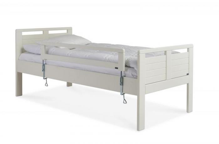 Turvalaita kiinnittyy vaivattomasti sängyn sivulaitaan ilman jälkiä, ja sen paikkaa voi muuttaa tarpeen mukaan. Kätevän laskumekanismin ansiosta laidan voi helposti laskea alas, kun sitä ei tarvita – täydellinen käytännöllisyyttä ja turvallisuutta arvostaville.