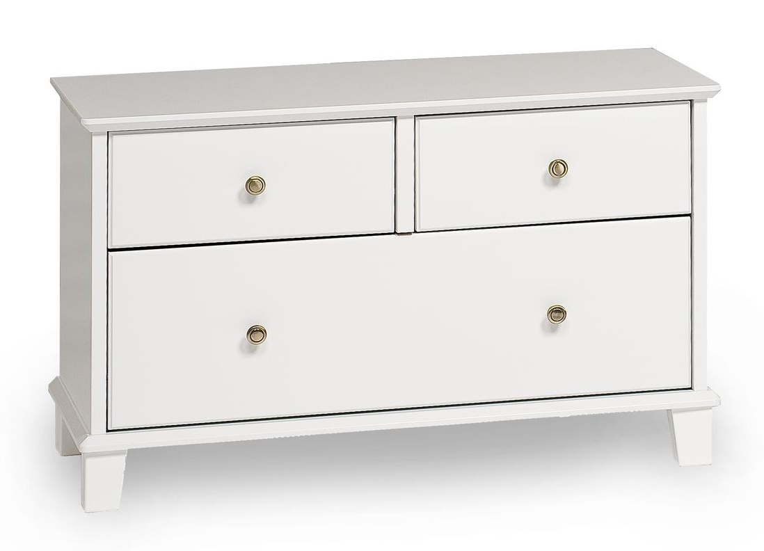 Messinginväriset nuppivetimet ja metallikiskolliset laatikot lisäävät käytön mukavuutta ja tuovat hienostuneen viimeistelyn. Klaara lipasto 17 toimitetaan valmiiksi kasatuilla runko-osilla – sinun tarvitsee vain kiinnittää kansi, vetimet ja jalat, ja lipasto on käyttövalmis hetkessä.