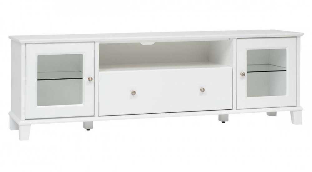 Klaara TV-taso 26 on kotimainen, ajattoman tyylikäs TV-kaluste, jossa yhdistyvät valkoinen runko, massiivikoivukansi ja messinginväriset vetimet. Lasiovet, säädettävät lasihyllyt ja vetolaatikko tarjoavat käytännöllisen ja elegantin säilytysratkaisun.