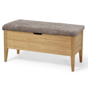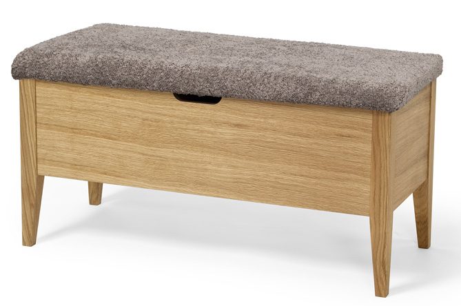 Klinte eteispenkki on tammirunkoinen, leveä ja pehmustettu eteispenkki, jossa avattava säilytyslaatikko ja siirreltävät väliseinät tuovat arkeen joustavuutta. Laadukkaat materiaalit, muunneltava säilytys ja ajaton skandinaavinen muotoilu tekevät siitä erinomaisen valinnan toimivaan ja tyylikkääseen eteiseen.