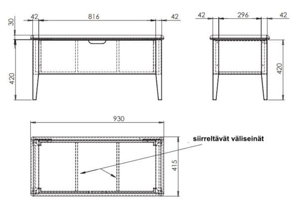 - Klinte eteispenkki avattavalla laatikolla ja pehmusteella. Avattavassa laatikossa kaksi siirreltävää väliseinää. Klinte tuotesarja on laaja huonekalusarja henkilölle joka haluaa yhdistää asunnon huonekalut yhteensopivaksi sarjaksi ja josta löytyy monta tarpeellista osaa kotiisi. Toimitus koottuna.