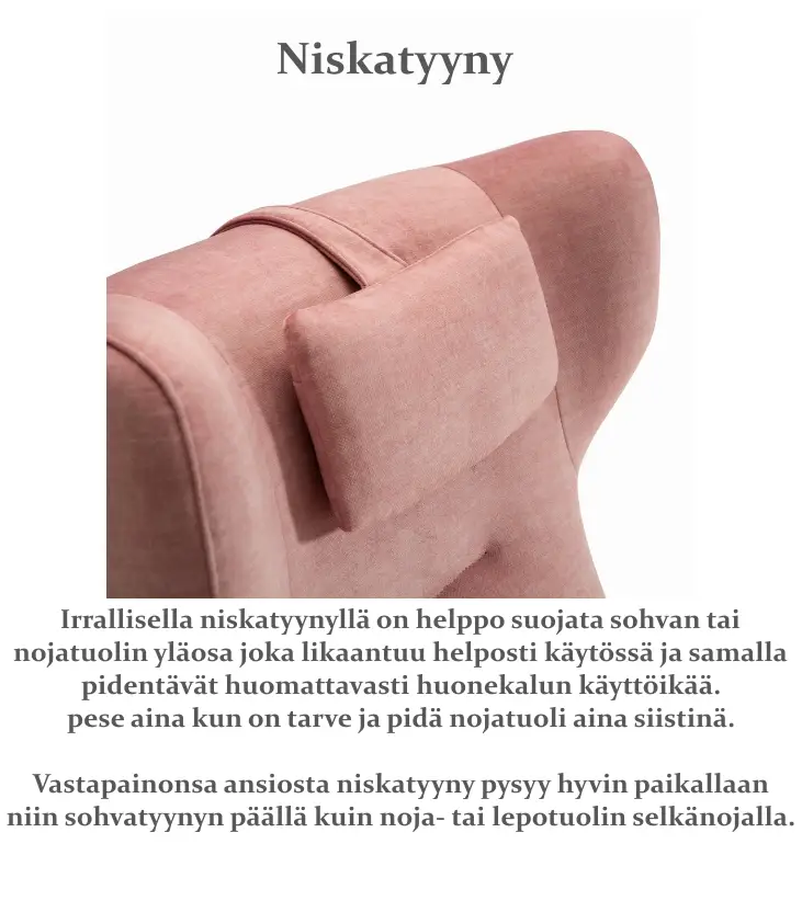 Huolellisesti muotoiltu pehmustus ja laadukkaat materiaalit tekevät Koalasta pitkään kestävän ja miellyttävän nojatuolin rentoutumiseen, lukemiseen tai television katseluun. Kokonaisuutta voi täydentää pestävillä käsinojasuojilla tai irrotettavalla niskatyynyllä, jotka lisäävät sekä käyttömukavuutta että verhoilun suojaa.