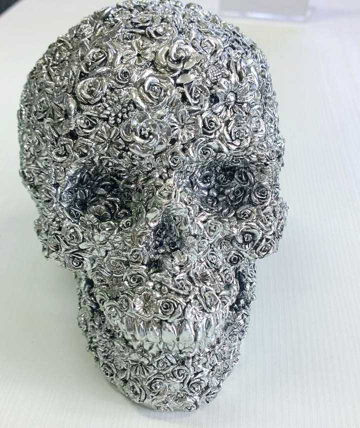 Koriste Pääkallo – Ruusu tuo kotiin rohkeaa eleganssia hopeisella viimeistelyllään, joka heijastaa valoa kauniisti ja tekee siitä välittömän katseenvangitsijan. Sen uniikki design herättää kiinnostusta ja luo moderniin sisustukseen persoonallista särmää.