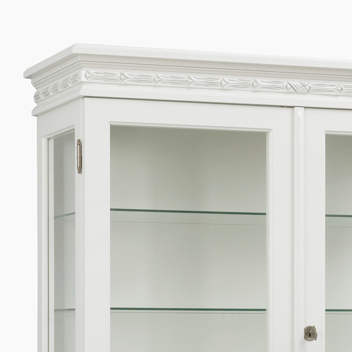 Tämä upea kotimainen Kustavilainen hopeakaappi tuo kotiisi arvokkuutta ja klassista tunnelmaa. Alakaapiston päälle sijoittuvat kaksi yksiosaista vitriiniä sekä keskellä oleva kaksiosainen vitriini muodostavat näyttävän kokonaisuuden. Jokaisessa vitriinissä on kolme korkeussäädettävää hyllyä, ja lasiset sivut tuovat esille esineesi kauniisti ja valoisasti.