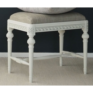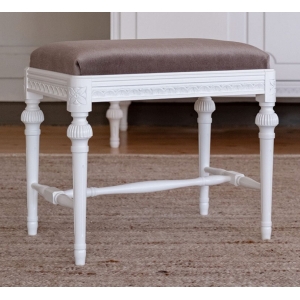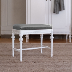 Kotimainen Kustavilainen kampauspöytä yhdistää tyylikkään designin ja käytännöllisyyden: siinä on kaksi kaappia, keskellä laatikko ja peili, ja lisätarvikkeena saatavissa rahi. Käsityönä viimeistelty pöytä on saatavilla useissa väreissä ja halutessasi käsin maalatulla kullan- tai harmaanvärisellä patinoinnilla.
