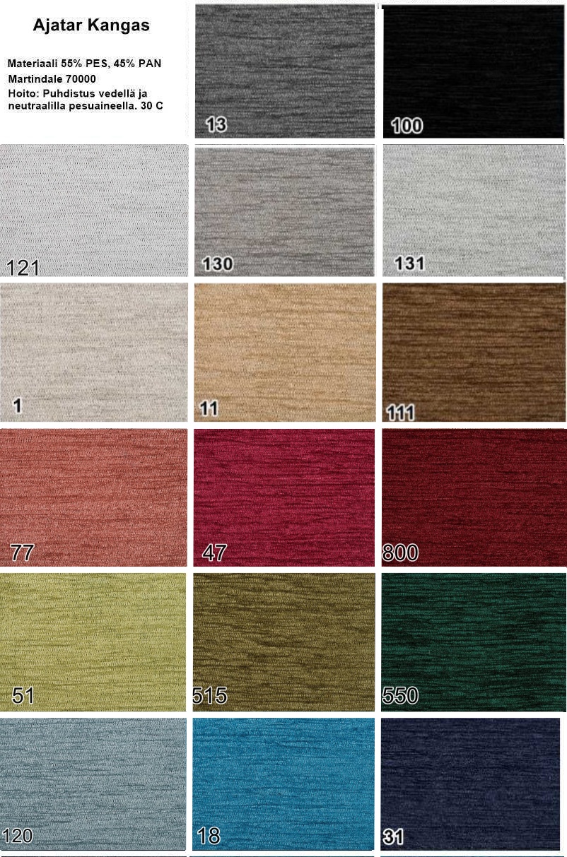 | Leveys | Syvyys | Korkeus | Halkaisija | kannen paksuus | Ruokapöydän koko avattuna 1 jatkolla | Ruokapöydän koko avattuna 2 jatkolla | Nojatuolin mitat | 2 ist sohvan mitat | 3 ist sohvan mitat | Istuinkorkeus | Työtuolin istuinkorkeus | Istuinleveys | Istuinsyvyys | Jalkojen malli | Jalkojen korkeus | Sokkelin korkeus | Selkänojan Leveys | Selkänojan korkeus | Niskatuen korkeus | Käsinojan korkeus lattaiasta | Käsinojan korkeus lattiasta | Käsinojan leveys | Käsinoja mallit | Istuintyyny | Selkätyyny | Muut pehmusteet | Divaanisohvan Jalkapäädyn korkeus | Divaanisohvan pääpäädyn korkeus | Jalkapäädyn korkeus | Pääpäädyn korkeus | Vuodesohvan syvyys avattuna | Vuodekoko | Istuinkorkeus patjan kanssa | Reunan korkeus | Sivulaidan korkeus | Patjapesän korkeus | Patjakoko | Päätyjen koot | Patjan korkeus | Patjan kovuus | Patjan koko jatkettuva | Vapaa tila sängyn alla | Sänkyjen materiaali | Patjojen materiaali | Sijauspatjan materiaali | Kangasverhoilu | Kaapin sisämitat | Laatikon sisämitat | Materiaali | Materiaalit | Mitta | Muut mitat | Muuta | lisätietoja | Väri | Jalkojen väri | Nahkavärit | Puuvärit | Vetimien väri | Vapaa tila tuotteen alla | Tekniset tiedot | Painoraja | Takuu | Saatavuus | Toimitus | Paino | Timantti värit | Jalat tai sokkeli | Kannen koko | Elementit | Ovien malli | Timantti osien materiaali | Hyllyjen materiaali | Vetimet | Valmistusmaa | Taljan mitat | Mattojen Materiaali | Tyynyjen ja torkkujen materiaali | mattojen mitat | Nukan pituus | Mattojen värit | Tyynyjen ja torkkujen värit | Rullamaton leveydet | Varjostimen korkeus: | Varjostimen leveys | Varjostimen syvyys | Valaisimen Materiaali | Valaisimen tiedot | Valaisimen värit | Varjostimen värit | Huomioitavaa | Työtuolien ominaisuudet | Työtuolien verhoilu |