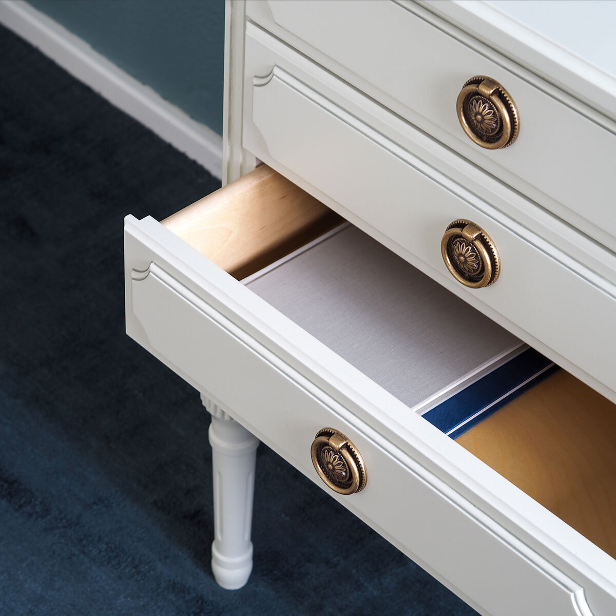 Kotimainen Kustavilainen lipasto kolmella laatikolla tarjoaa runsaasti säilytystilaa ja on viimeistelty huolellisesti käsityönä kestävästä koivusta. Saatavana useissa väreissä sekä käsin maalatulla kullan- tai harmaanvärisellä patinoinnilla, lipasto tuo kotiisi ajattoman tyylikkyyden – valmiiksi koottuna.