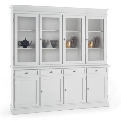 Kahdesta osasta koostuva vitriini tarjoaa kuusi kaappia ja puuhyllyt, jotka tekevät astioiden, koriste-esineiden ja muiden aarteiden järjestämisestä helppoa ja tyylikästä. Runsas säilytystila yhdistettynä harmoniseen muotoiluun tekee siitä käytännöllisen ja näyttävän valinnan.